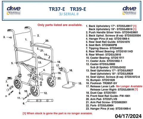 Rear Wheel For Drive Transport Chair TR37E-SV & TR39E-SV With Serial Numbers 8M and 4S - 1 Each - STDS4S3605